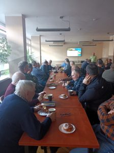 Tym razem przy kawie i pączku odbyło się szkolenie z zakresu chorób i pasożytów pszczół przeprowadzone przez lek. wet. Przemysława Stawarczyka.