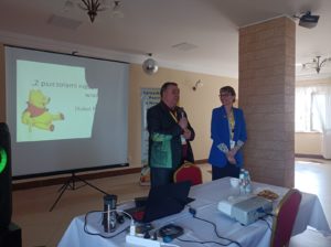Po czasie zabawy nastał czas nauki. Prowadzącymi szkolenia byli Dr. Maria Zoń oraz prof. dr hab. Aneta Strachecka. Słuchacze pozyskali wiedze m in. na temat biologii rodzin pszczelich, gospodarki pasiecznej, chorób pszczół i ich zwalczania i zapobiegania. Wyrazy wdzięczności dla prowadzących za przekazanie cząstki wiedzy naszym pszczelarzom i pszczelarkom.