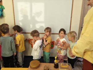 Podczas spotkania najmłodsi z ogromną radością odkrywali fascynujący świat pszczół – kim są, jak żyją i dlaczego ich rola jest tak ważna dla naszej planety.